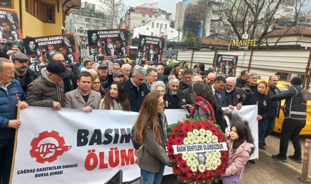 Törende Çağdaş Gazeteciler Derneği (ÇGD) Bursa Şubesi Başkanı Tayfun Çavuşoğlu tarafından bir basın açıklaması gerçekleştirildi. Tören kapsamında ayrıca Anadolu Gazeteciler ve Spor Yazarları Derneği (ASGD) Genel Başkanvekili Yüksel Baysal ile Türkiye Spor Yazarları Derneği (TSYD) Bursa Şube Başkanı Mehmet Ali Ekmekçi de birer selamlama konuşması yaparak günün anlam ve önemine değindi. Atatürk Anıtı'na kurumlar adına çelenk sunumu gerçekleştirildi. Katılımcılar, Uğur Mumcu çelenginin çevresini kırmızı karanfillerle donattı. Uğur Mumcu'ya saygı çelengini Gazeteci Günnur Ataokay ile kızı Ada Ataokay birlikte taşıdı.
