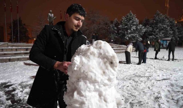 Ulaşımda 43 ilin geçiş güzergahı olan kilit kavşak Kırıkkale'de kar yağışı etkili oldu. Kar manzarasıyla hareketlenen meydanlarda ise gençler kar topu oynadı, vatandaşlar yürüyüş yaptı.