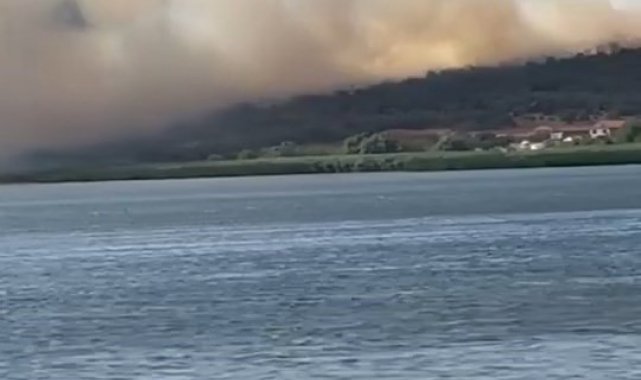 Yangının Uluabat Gölü'nün hemen yakınlarında olması hava araçlarının işini kolaylaştırdı. Ekiplerin dört koldan çalışması sürdürülüyor.