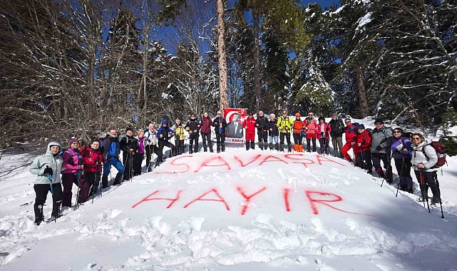 Kulüp üyeleri ve katılımcılar, dünyada yaşanan savaş ve çatışmalara dikkat çekmek amacıyla anlamlı bir mesaj verdi. Beyaz kar örtüsü üzerine büyük harflerle 'Savaşa hayır' yazan doğaseverler, sporun barışçıl ve birleştirici gücünü bir kez daha ortaya koydu.