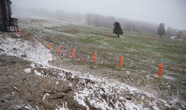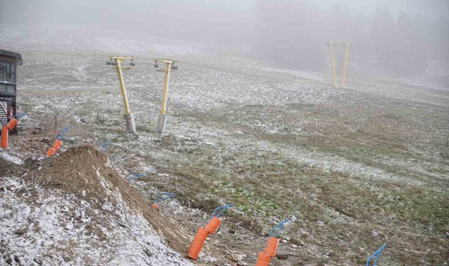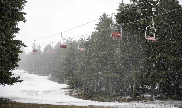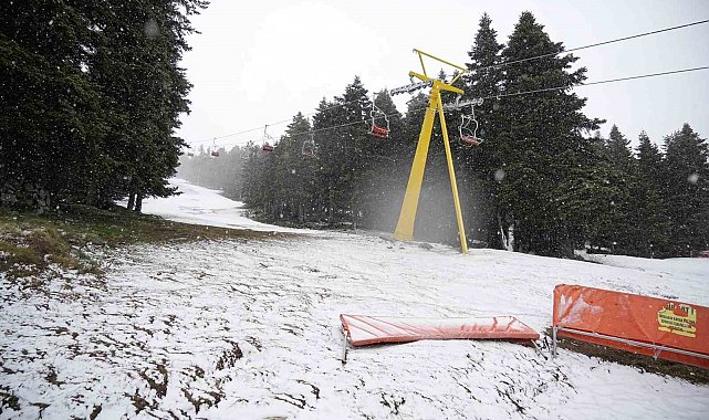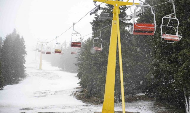 Kış turizmi destinasyonlarından Uludağ'a mayısta yağan kar pistlerin bir kısmını beyaza bürüdü.
