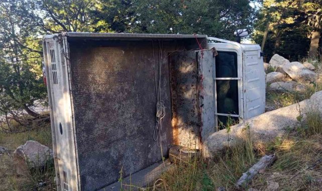 Bursa'da virajı alamayan sürücü kontrolü kaybedip kamyoneti devirdi.