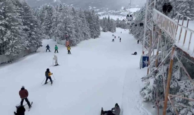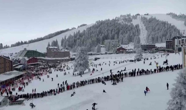 Kış turizminin önemli yerlerinden olan Uludağ'da tatilci yoğunluğu devam ediyor. Farklı illerden gelen tatilciler karın tadını çıkarırken, kayakçıların oluşturduğu kuyruk ise kameraya yansıdı.