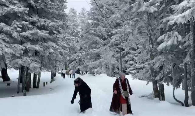 Uludağ'da yoğun kar sevindirdi...Dron ile sis bulutları arasında muhteşem görüntüler