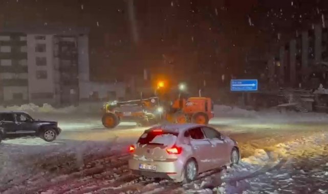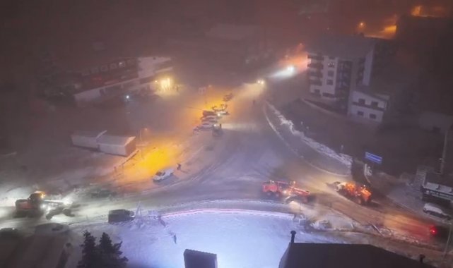 Uludağ'da yoğun kar var...Ekipler yolların kapanmaması için aralıksız çalışıyor
