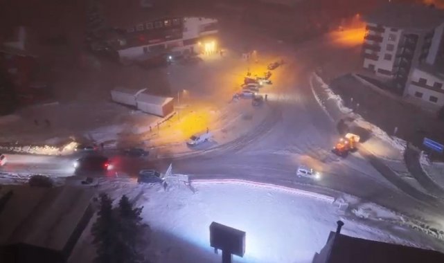 Karayolları ekipleri hem oteller bölgesinde hem de yol güzergahında kar küreme çalışması yapıyor.