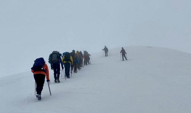 Görüş mesafesinin düşük olduğu, yaklaşık 5 saat süren tırmanışın ardından geri dönen ekip, bembeyaz karlar üzerinde Türk Bayrağının dalgalanmasının mutluluğunu yaşadı.