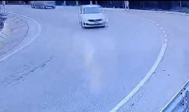 Kazada yaralanan ya da can kaybı olmazken, araçta maddi hasar oluştu. Kaza anı bir işyerinin güvenlik kamerasına yansıdı.