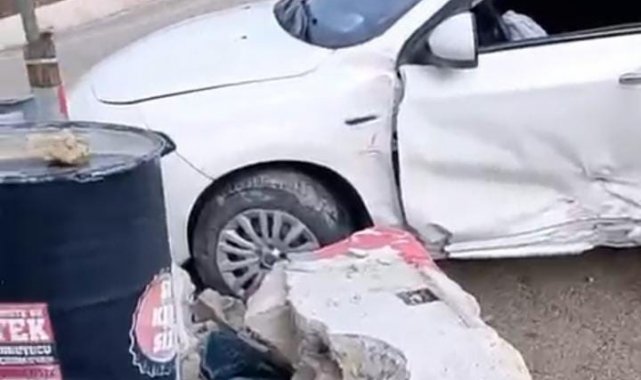Uludağ yolundan şehir merkezine seyreden bir otomobil virajı alamayarak bariyerlere çarptı. O anlar güvenlik kamerasına yansıdı.