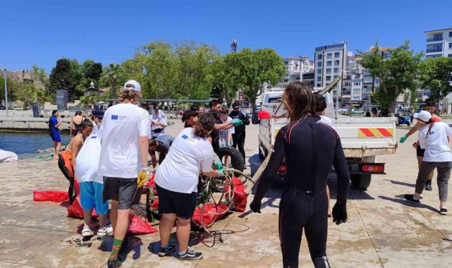 Sinop'ta, "Avrupa Dayanışma Programı Yüksek Öncelikli Bölgelerde Gönüllü Takımları Projesi" kapsamında 9 farklı ülkeden gelen 28 gönüllü, hem denizden hem de sahillerden çöp toplayarak çevre kirliliğine dikkat çekti.