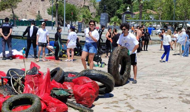 Proje kapsamında gönüllü gençlerle birlikte hem sahil şeritlerinden hem de deniz dibinden çöp toplama çalışmaları yürüttüklerini belirten Kuru, "Biz bu çöpleri hem sahillerimizden hem de deniz dibinden topluyoruz" ifadelerini kullandı.