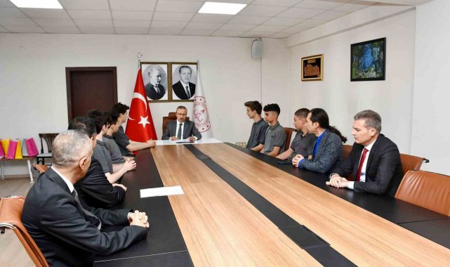 Eskişehir'den 17. Uluslararası MEB Robot Yarışması'na katılıp derece elde eden öğrenciler İl Milli Eğitim Müdürü Sinan Aydın'a ziyarette bulundu.