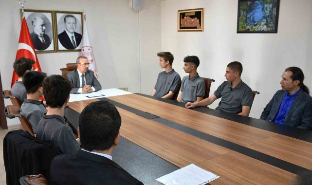 Uluslararası Robot Yarışması'nda derece alan öğrencilerden İl Milli Eğitim Müdürü Aydın'a ziyaret