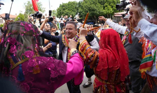 Kortejin Karaalioğlu Parkı'na ulaşmasının ardından halk oyunları gösterileriyle karşılanan Başkan Muhittin Böcek, kalabalığın arasına karışarak Aksekili Yörüklerin oyun davetine katıldı. Renkli yöresel giysiler içinde kaşık oyunları oynayan kadınların ortasında yer alan Böcek, figürleriyle alana coşku kattı.