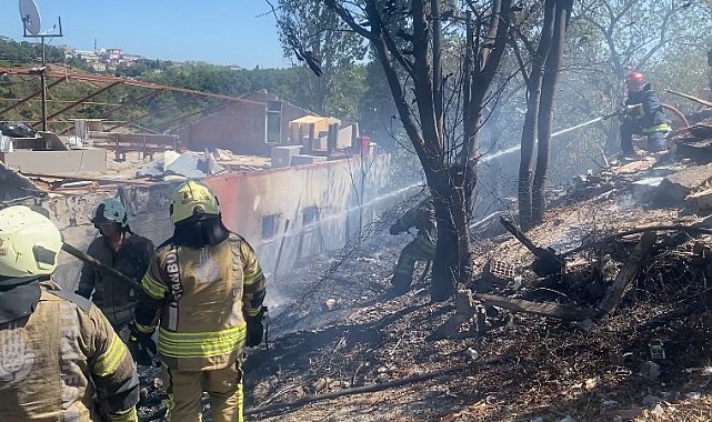 Ümraniye'de ağaçlık alanda çıkan yangın paniğe neden oldu. Yangın, kullanılmayan eşyaların bulunduğu metruk binaya da sıçradı.