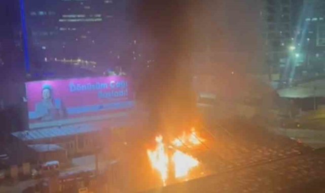 Ümraniye'de akaryakıt istasyonunun marketinde yangın