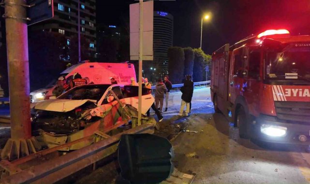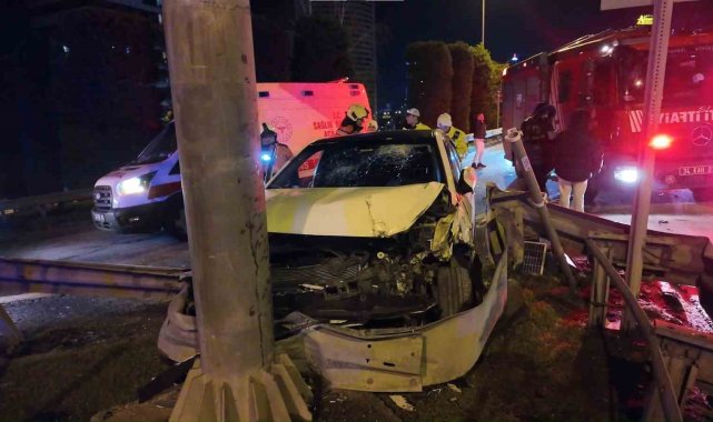 Ümraniye'de alkollü sürücünün kullandığı otomobil bariyerlere saplandı: 2 yaralı