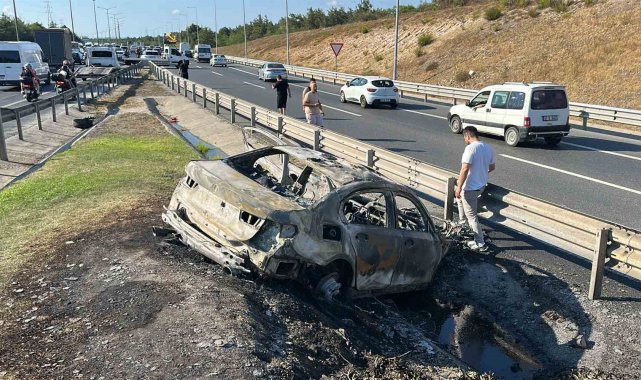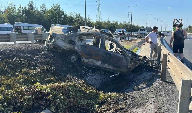 Ümraniye'de kontrolden çıkarak refüje giren otomobil alev topuna döndü. Kısa sürede alevlere teslim olan araç, vatandaşların cep telefonu kamerasıyla saniye saniye görüntülendi.