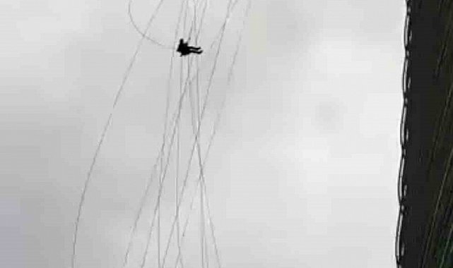 İstanbul'un Ümraniye ilçesinde sabah saatlerinde etkili olan kuvvetli rüzgar, cam temizliği yapan işçilere zor anlar yaşattı. Gökdelenin dış cephesinde halatlarla çalışan işçiler, rüzgarın etkisiyle uzun süre savruldu.