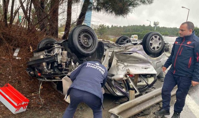 Ümraniye'de otomobil takla attı: 1 yaralı