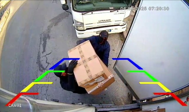 Öte yandan şahısların park halindeki tırdan gerçekleştirdikleri hırsızlık anları kameraya yansıdı.