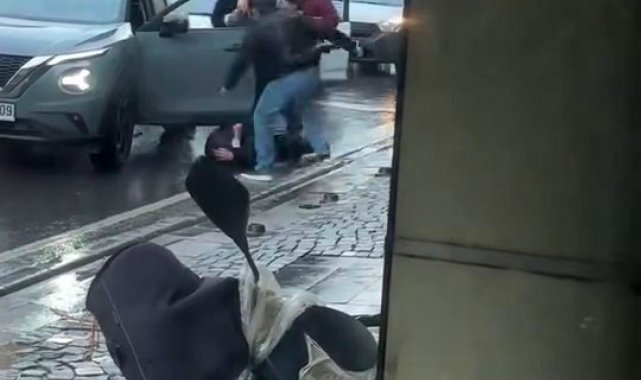 Ümraniye'de park yeri yüzünden çıkan kavgada 3 kişi sürücüyü tekme ve yumruklarla darp etti. O anlar cep telefonu kamerasına yansıdı.