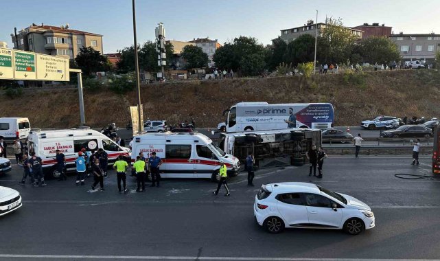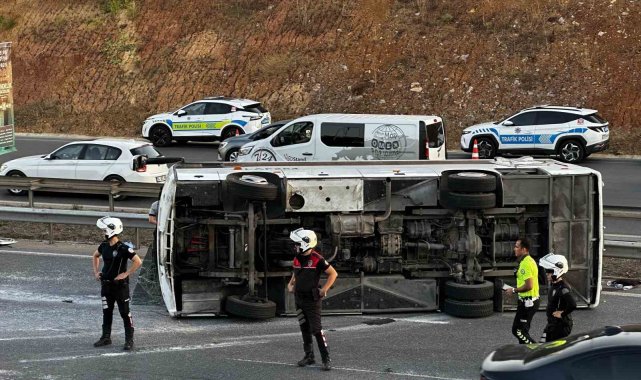 Ümraniye'de servis midibüsü devrildi: 8 yaralı