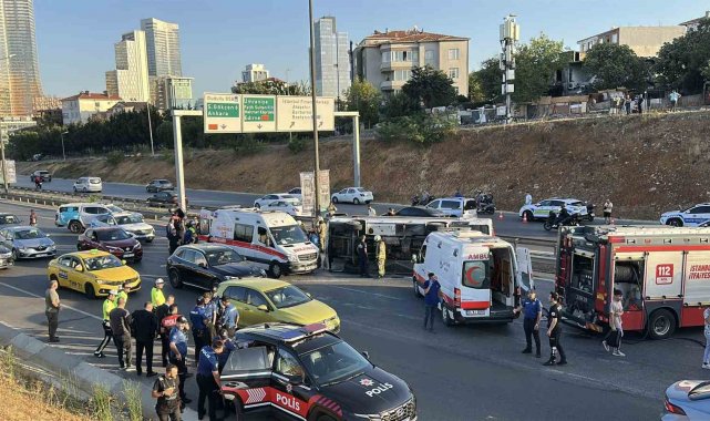 Ümraniye'de finans merkezi çalışanlarını taşıyan servis midibüsü kontrolden çıkarak devrildi. Kazada 8 kişi yaralandı.