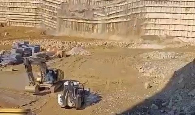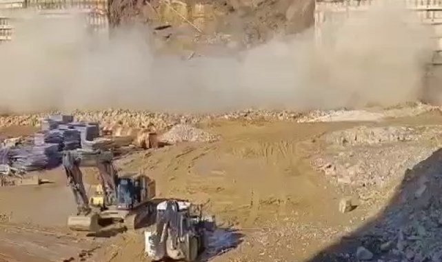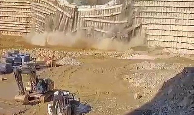 Ümraniye'de bir inşaat alanında yapılan çalışmalar sırasında istinat duvarının yıkılması sonucu yolda çökme meydana geldi. Korku dolu anlar bir vatandaşın cep telefonu kamerasına yansıdı.