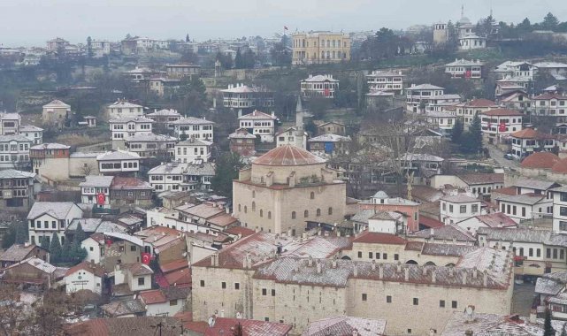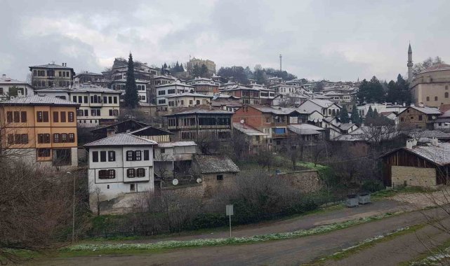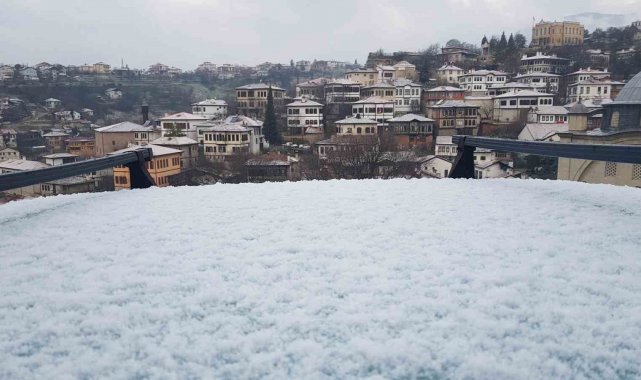 UNESCO Dünya Miras Listesinde yer alan Karabük'ün Safranbolu ilçesinde bulunan tarihi konakların çatıları kar yağışı beyaz örtüyle kaplandı.