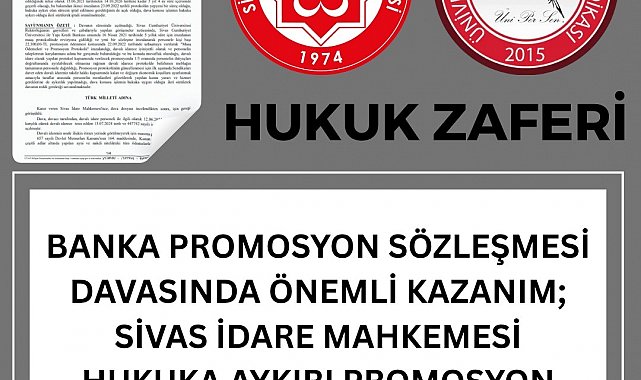 Üniversite İdari Personel Sendikası'ndan (Üni-Per-Sen) Sivas Cumhuriyet Üniversitesi'nde promosyon sözleşmesi davasında önemli kazanım elde etti. Sivas İdare Mahkemesi hukuka aykırı promosyon protokolünü iptal etti.