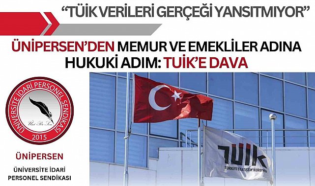 Üniversite İdari Personel Sendikası (ÜNİPERSEN), memur ve memur emeklilerine Ocak ayında uygulanan maaş artışını doğrudan etkileyen son altı aylık Türkiye İstatistik Kurumu'nun (TÜİK) enflasyon verilerine karşı hukuki süreci başlattıklarını bildirdi.