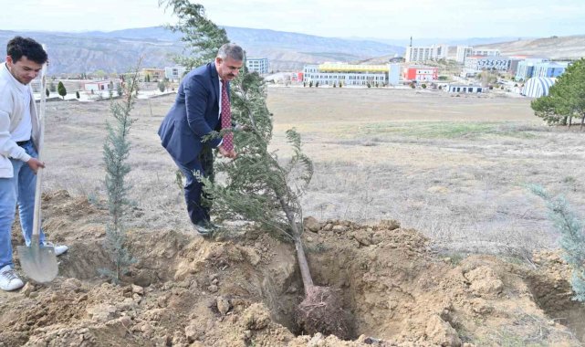Üniversite kampüsünde aileler için fidanlar toprakla buluşturuldu