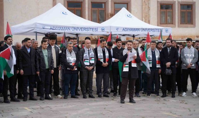 Adıyaman Üniversitesi öğrencileri, Filistin'e destek vermek amacıyla Hısn-ı Mansur Camii önünde basın açıklaması gerçekleştirdi.