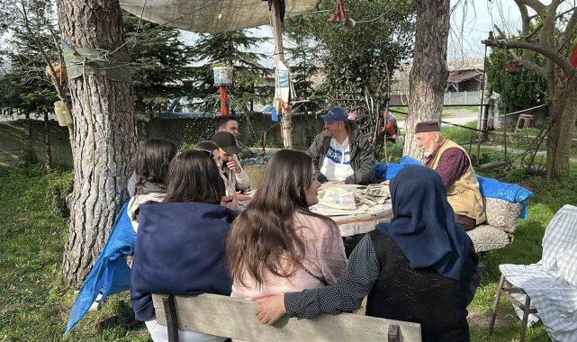 Düzce Meraklıları Topluluğu (Dümerang), Türk Bayrağı sevgisiyle tanınan 86 yaşındaki Adem ve Dilber Karagülle çiftini ziyaret ederek keyifli vakit geçirdi, evlerinin temizliğine yardım ederek hayır dualarını aldı. Düzce'de yürüttüğü sosyal sorumluluk projeleriyle adından söz ettiren Dümerang, Ramazan ayında da çalışmalarını sürdürüyor. Öğrenciler, Düzce'de Türk Bayrağı sevgisiyle tanınan, tatlı dili, güler yüzü ve yaşama dair tecrübelerini hoş sohbetiyle aktaran Adem Karagülle'yi evinde ziyaret etti. Adem ve Dilber Karagülle çifti, evlerinde ağırladıkları gençlerin ziyaretiyle çok mutlu olduklarını belirtti. Gençler, 86 yaşındaki Adem amca ve 70 yaşındaki eşi Dilber teyzenin hoş sohbetinin ardından, yaşlı çiftin ev temizliğine yardım ederek hayır dualarını aldı.