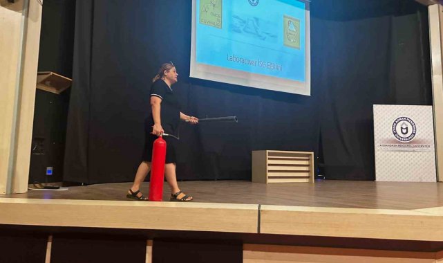 Adnan Menderes Üniversitesi (ADÜ) İş Sağlığı ve Güvenliği (İSG) Profesyoneli Gülay Kandemir tarafından verilen 'Laboratuvar İş Sağlığı ve Güvenliği' eğitiminde, laboratuvar ortamında dikkat edilmesi gereken hususlar ele alınarak özellikle ispirto ocağı kullanımında uyulması gereken güvenlik önlemleri üzerinde duruldu. Eğitim kapsamında öğrencilerin mesleki yaşamlarında karşılaşabilecekleri riskler konusunda farkındalık kazanmaları ve güvenli çalışma ortamı bilincinin geliştirilmesi hedeflendi.