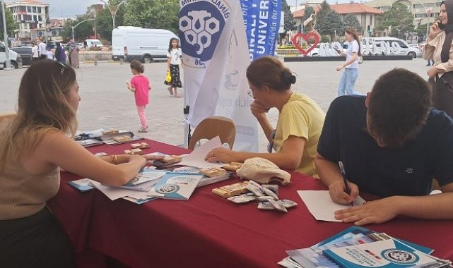 YKS tercih dönemi ile birlikte Erzincan Binali Yıldırım Üniversitesi Kurumsal İletişim Koordinatörlüğü ile Kariyer Geliştirme araştırma ve Uygulama Merkezi tarafından Dört yol Cumhuriyet Meydan'ında açılan stant da aday öğrencilere destek veriliyor.