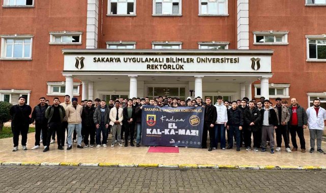 Sakarya İl Jandarma Komutanlığı ekipleri, SUBÜ'de düzenlenen eğitimde öğrencilerle bir araya geldi. Kadına yönelik şiddet ve uyuşturucuyla mücadele yöntemlerinin anlatıldığı programda, erkek öğrenciler "Kadına el kalkmaz" pankartı açarak mesaj verdi.