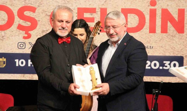 Başkan Aşgın, sahne alan sanatçılara günün anısına hediye takdim etti.