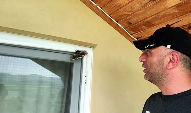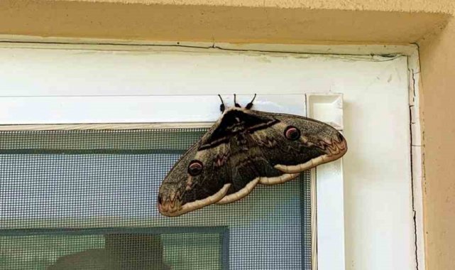 Kelebeği görerek hayrete düşen ve cep telefonu ile kayıt eden Ersin Yalçın, "İki gündür evimizin penceresinde duruyor bu kelebek. Ve internette araştırdığımız zaman bu türün 'tavus kelebeği' olduğunu gördük. Kelebeğin kanat açıklığı 15-16 santimetreye kadar ulaşıyor. Çok güzel desenleri var. Üzerinde baykuş gözüne benzeyen ve dalgalı desenler var. Güzel ve nadir bir kelebek, ilk defa böyle bir şeye rastladığımız için şaşırdık" dedi.