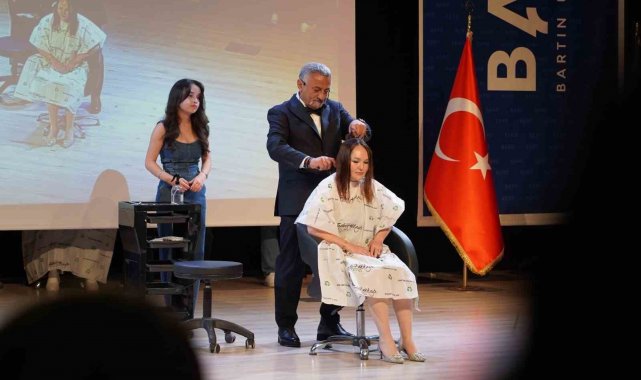 Bartın Üniversite'sinde (BARÜ) ünlü saç stilisti Sabit Akkaya, öğrencilerle bir araya gelerek mesleki deneyimlerini paylaşırken saç kesim tekniklerini uygulamalı olarak gösterdi.