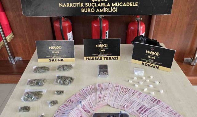 İl Emniyet Müdürlüğü Çeşme Narkotik Suçlarla Mücadele Büro Amirliği ekiplerince Mart ayında 11 ayrı uyuşturucu operasyonu düzenlendi. Belirlenen adreslerde yapılan aramalarda, 9 kök kenevir bitkisi, 168 gram skunk esrar, 18 gram kokain, 23 adet sentetik ecza, 1 hassas terazi, 1 tabanca, 10 adet tabanca fişeği ve kenevir bitkisi yetiştirilmesinde kullanılan çok sayıda malzeme ele geçirildi. Operasyonlar kapsamında İnterpol tarafından kırmızı bültenle aranan ve 15 yıl kesinleşmiş hapis cezası bulunan bir kişinin de aralarında bulunduğu 13 şüpheli yakalandı. Emniyetteki işlemlerinin ardından adliyeye sevk edilen şüphelilerden 5'i çıkarıldıkları mahkemece tutuklanırken, Alman yetkili makamlarının iade talebinde bulunduğu kırmız bültenle aranan D.S ise İl Göç İdaresi Müdürlüğüne teslim edildi.