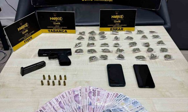 İzmir'in ünlü tatil merkezi Çeşme ilçesinde polisin düzenlediği operasyonlarda çok sayıda uyuşturucu madde ve silah ele geçirildi. Gözaltına alınan 13 şüpheliden 5'i tutuklandı.