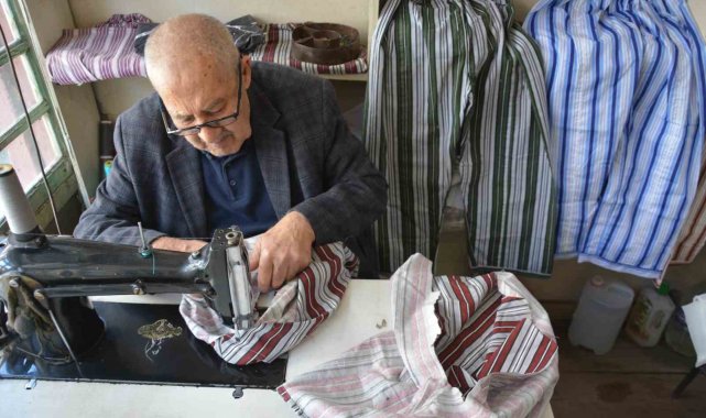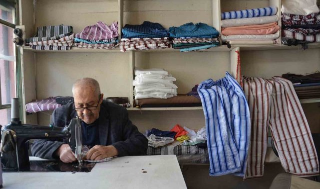 El emeğiyle hazırladığı pijama takımlarıyla geçmiş ile bugün arasında köprü kuran Yaşar Öztemel, küçük dükkanında büyük bir geleneği yaşatmaya devam ediyor.