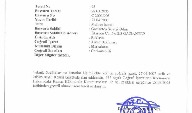 Ülkede pek çok şehirde Antep Baklavası adıyla satılan ürünlerin hem tüketiciyi yanılttığını hem de Gaziantep'in marka değerine zarar verdiğini belirten Ünverdi, "Gerçek Antep Baklavası, malzemesinden ustalığına, geleneğinden sunumuna kadar her detayıyla ayrıcalıklıdır. Her Antep Baklavası kutusunda mutlaka 'Antep Baklavası' logosunun yer alması gerekmektedir. Bu, ürünün orijinal Antep Baklavası olduğunun göstergesidir. Hem Türk Patent hem de AB tescil esaslarında belirtildiği gibi, Antep Baklavası üreticilerinin, belirli şartları yerine getirerek Odamızda 'Antep Baklavası' üreticileri için oluşturulan üretici listesine kayıt olması gerekmektedir. Bu firmalar, Antep Baklavası'nın AB tescil şartnamesinde belirtilen ürün kalitesi ve görsel kimlik kılavuzuna uygun olarak ürünlerini imal etmekte ve satışlarını yapmaktadır. Türk patent ve AB tarafından tescillenen standartlar çerçevesinde Antep Baklavasını üreten firmaların denetimleri Odamız tarafından standartlarda belirtilen periyotlarda yapılarak kontrol edilmektedir. AB'den alınan coğrafi işaret olan mahreç işaretinin bulunması baklavanın coğrafi tesciline uygun olduğunu belirtmekte olup insanımızın gerçek Antep Baklavası'na ulaşabilmesini sağlamaktadır. Bu sayede dünyaca tescilli geleneksel lezzetimizi koruyabilir ve orijinaline uygun olarak kuşaktan kuşağa aktarabiliriz" ifadelerine yer verdi.