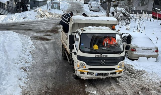 Ünye Belediyesi ilçe genelinde karla mücadele çalışmalarına devam ediyor.