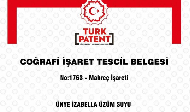 Yaklaşık üç yıl süren girişimlerin ardından "İzabella üzüm suyu", Türkiye'de coğrafi işaret alan 1763'üncü ürün oldu. 8 Ağustos 2022 tarihinde yapılan başvuru sonrası geçen zorlu sürecin ardından 27 Ağustos 2025 tarihli karar ile birlikte Ünye İzabella üzüm suyu resmen coğrafi işaret tescili kazandı. Tescil ile ilgili karar ise 15 Eylül 2025 tarihli ve 205 sayılı Resmi Coğrafi İşaret ve Geleneksel Ürün Adı Bülteninde yayımlanacak.