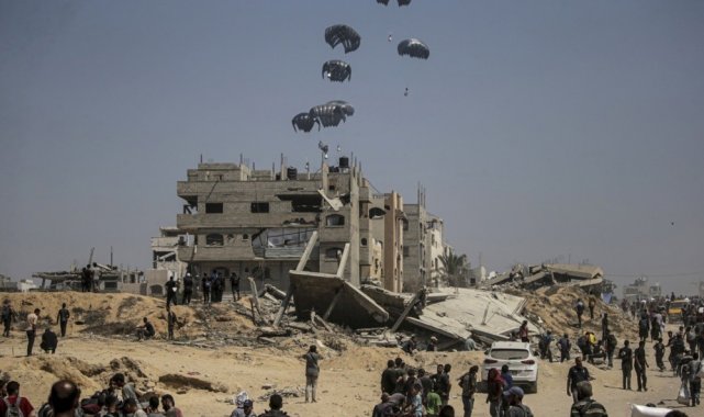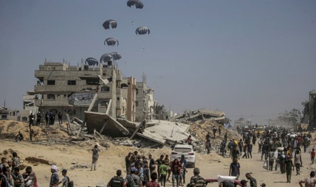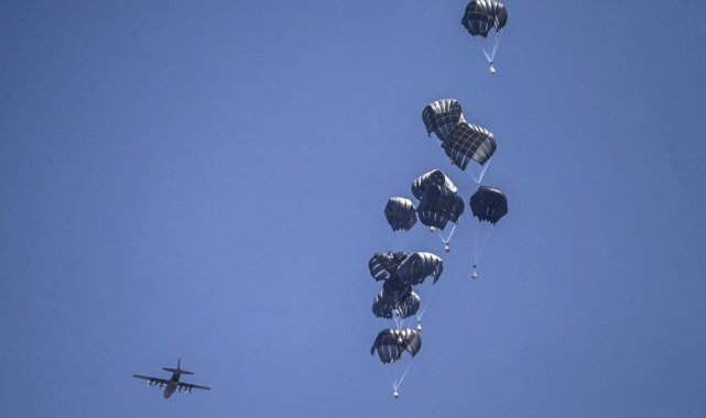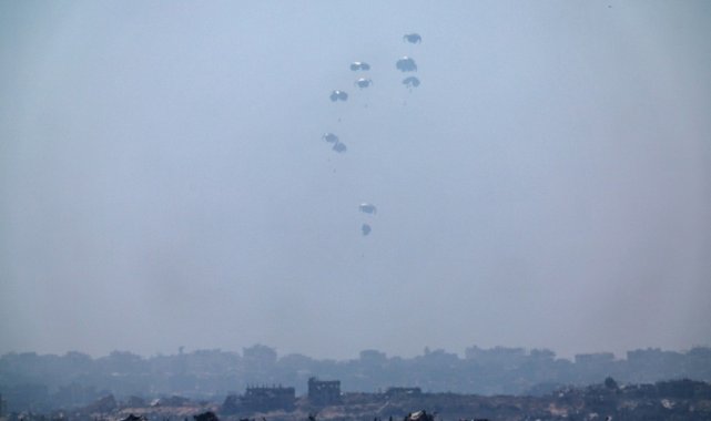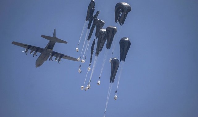 Ürdün Kraliyet Hava Kuvvetleri ve Birleşik Arap Emirlikleri (BAE) Hava Kuvvetleri ortak işbirliğiyle düzenlenen havadan ikmal yardımlarında Gazze Şeridi'ndeki farklı bölgelere paraşütlerle 25 tonluk gıda ve temel ihtiyaç malzemeleri bırakıldı.