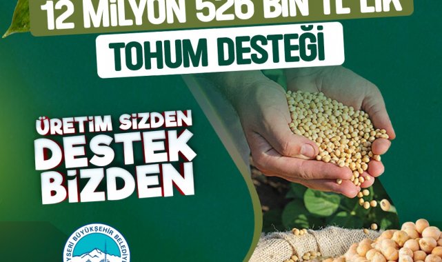 Kayseri Büyükşehir Belediyesi; kentin tarımsal üretim yapan çiftçilerini desteklemek ve Kayseri'nin ülke tarımındaki üretim katkısını arttırmak amacıyla 2025 yılında 12 milyon 526 bin TL maliyetli toplamda 262 ton nohut, yeşil mercimek ve buğday tohumu ile 3 bin fidan dağıtımı yaptı.