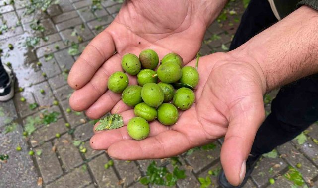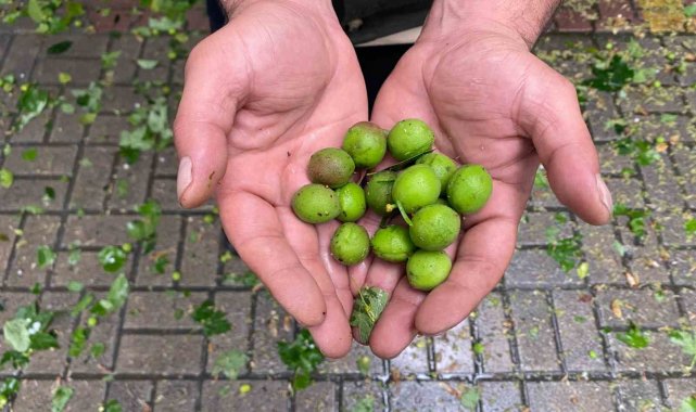 Fındık büyüklüğünde düşen dolu nedeniyle, yeni meyveye dönen ağaçların yaprakları ve meyveleri yerlere döküldü. Zirai don olaylarının ardından bu kez de dolu hasarıyla karşı karşıya kalan üreticiler, yeni üretim sezonu daha başlamadan sıkıntılı günler yaşamaya başladı.